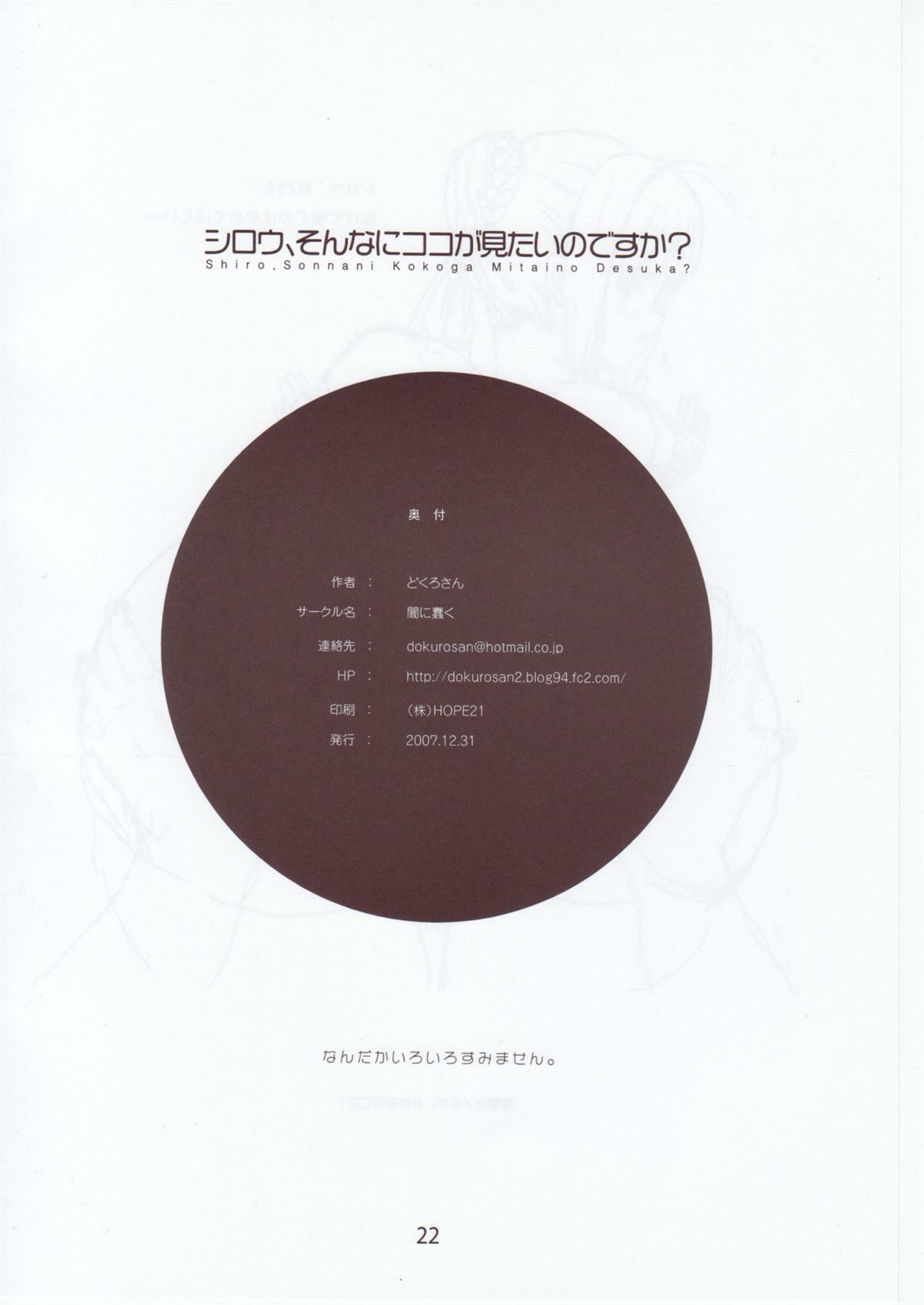 (C73) [Yami ni Ugomeku (Dokurosan)] Shiro, Sonnani Kokoga Mitaino Desuka? (Fate/stay night)