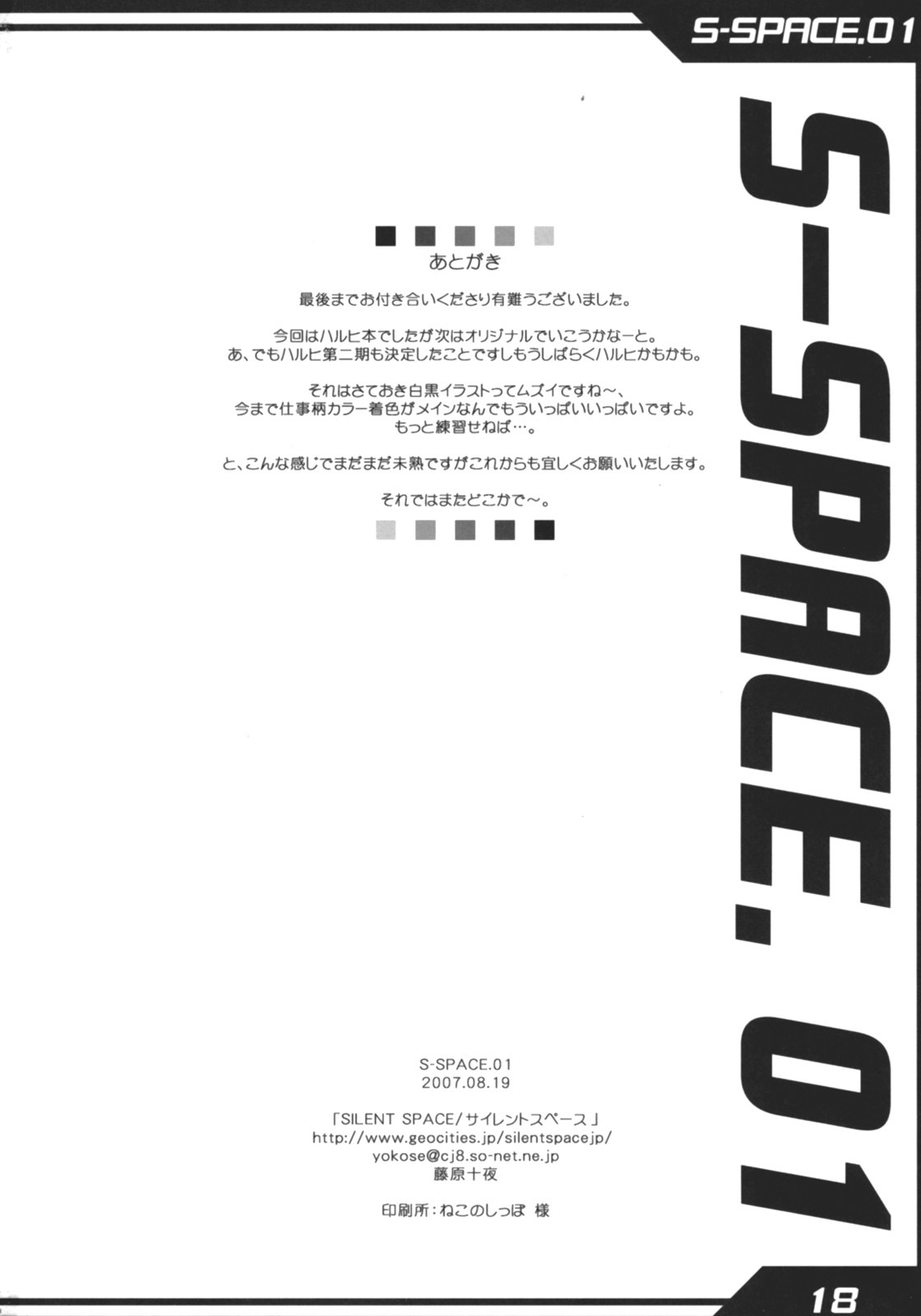 (C72) [SILENT SPACE (Fujiwara Tooya)] S-SPACE. 01 (Suzumiya Haruhi no Yuuutsu)