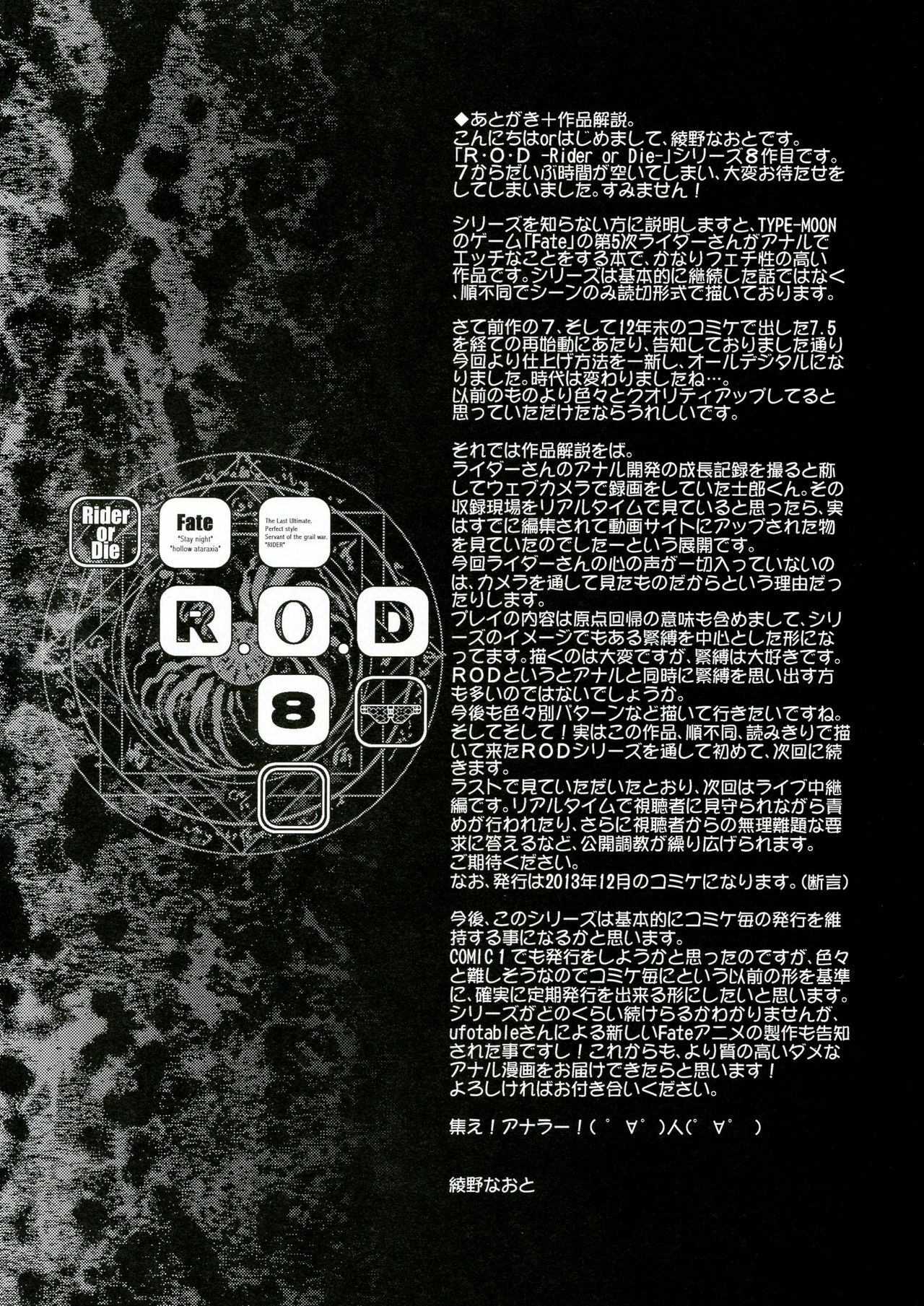 (C84) [Kaiki Nisshoku (Ayano Naoto)] R.O.D 8 -Rider or Die 8- (Fate/hollow ataraxia)
