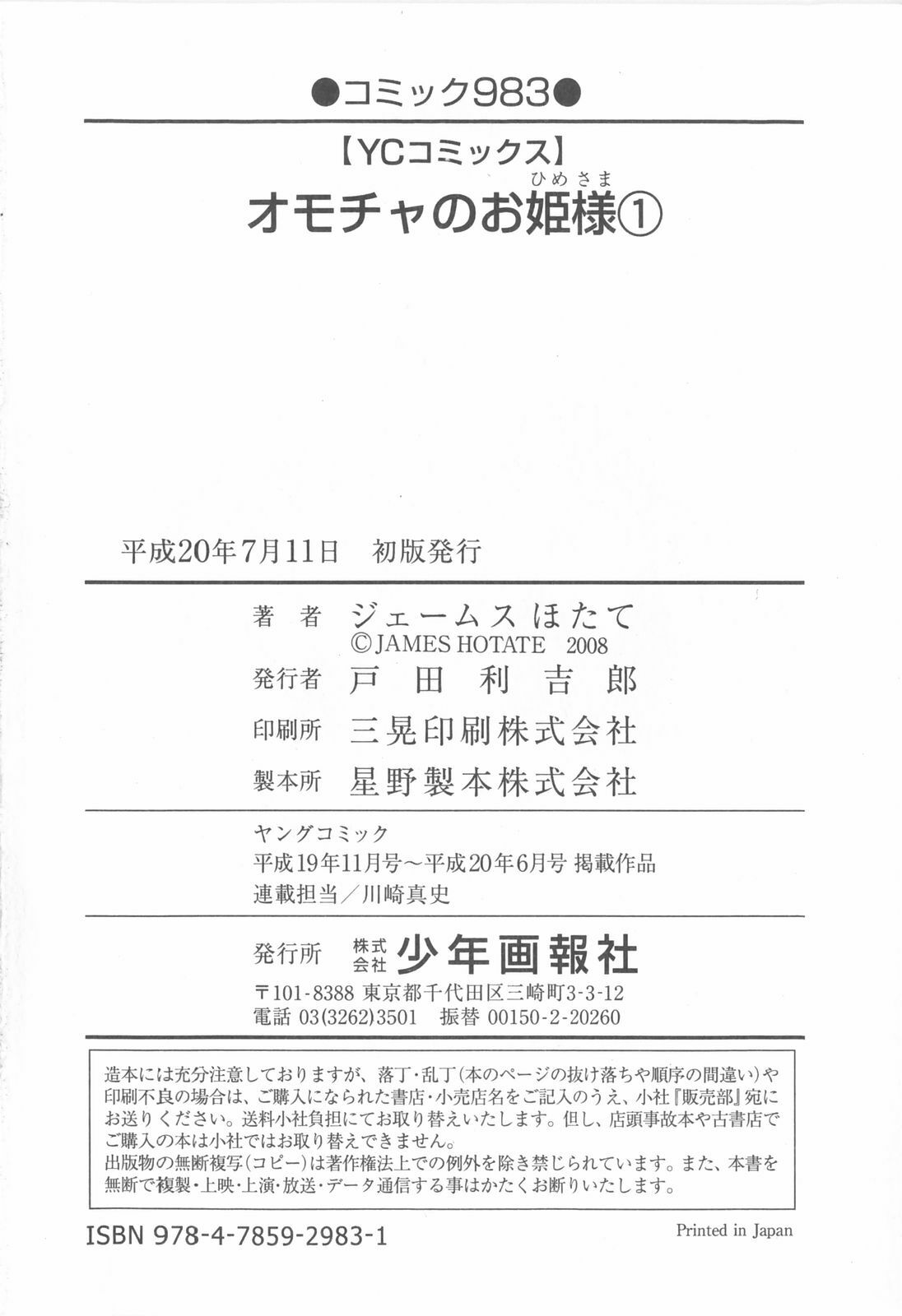 [James Hotate] Omocha No Ohime-sama | La Princesse De Jouet Vol. 1