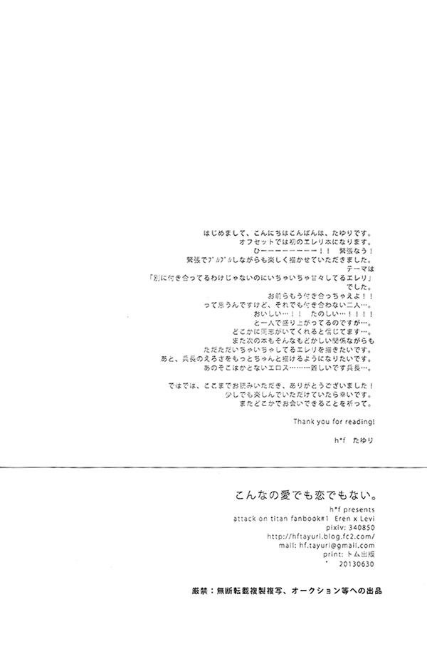 [h*f (Tayuri)] Konna no ai demo koi demo nai (Shingeki no Kyojin) [English] {heichoulicious}