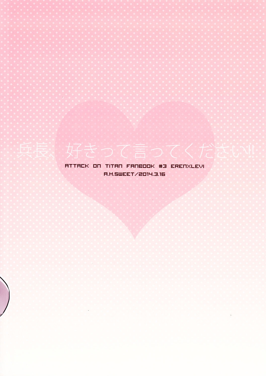 (HaruCC19) [A.M.Sweet (Hinako)] Heichou, Suki tte Itte Kudasai! ! (Shingeki no Kyojin) [English] [Moy Moe Scanlations]
